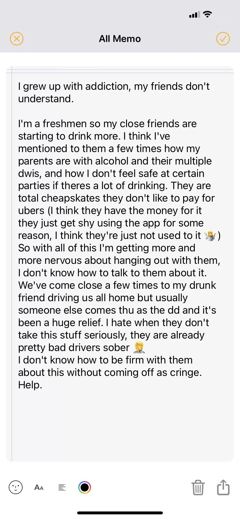 How do you deal with the trigger? I think, generally, with compassion, which can be seen as cringe, different choices, which can be cringe, and communication, which can also feel cringe. RELEASE THE RESISTANCE TO CRINGE! Cringe is honesty, vulnerability, trust– all those things that make us wholly human and connected. An important question for you is, “who am I connecting to?” Because your friends aren’t really acting very friendly. How many times do you need to tell your friends before they listen? How many times do you need to tell them you grew up in a household with alcohol issues and are triggered by being at parties where there’s a lot of drinking? It doesn’t sound like these are friends who have your back. It's possible they don’t know HOW to have your back.